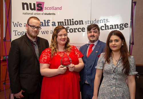 We’re delighted to share that our Students Association has scooped a top prize at the annual National Union of Students Scotland awards, taking home ‘Officer Team of the Year for 2019’.