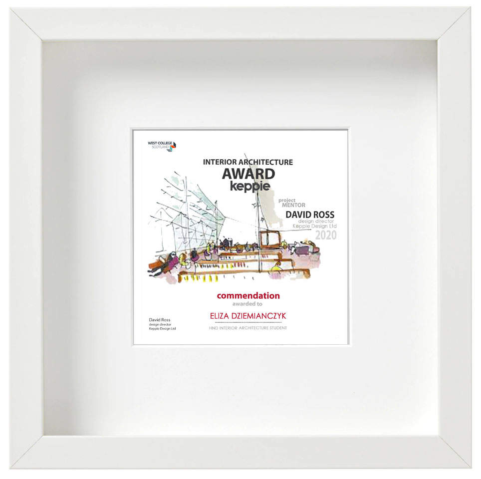 David Ross, Design Director for Keppie Design, said "I’m honoured for Keppie to be associated with such a forward-looking College. The HND Interior Design course places a focus on creativity and communication; skills which employers prioritise when recruiting. I’m constantly inspired by the commitment and enthusiasm of the students, but especially this year when their studies were so unexpectedly interrupted. To have delivered such fantastic, imaginative design responses for the Keppie project in such circumstances is a magnificent achievement. I am very proud of all of them and I’m certain they’ll go on to have highly valued and successful careers as the designers of the future.