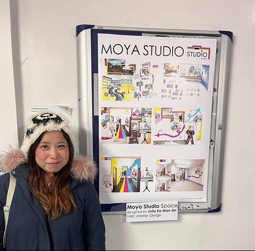After a meticulous selection process for the winning logo, the talented HNC Interior Design students embarked on crafting stunning interior vision boards for the designated space. Among the exceptional designs, Julia Ka Man Sin's visionary board emerged as the triumphant choice.