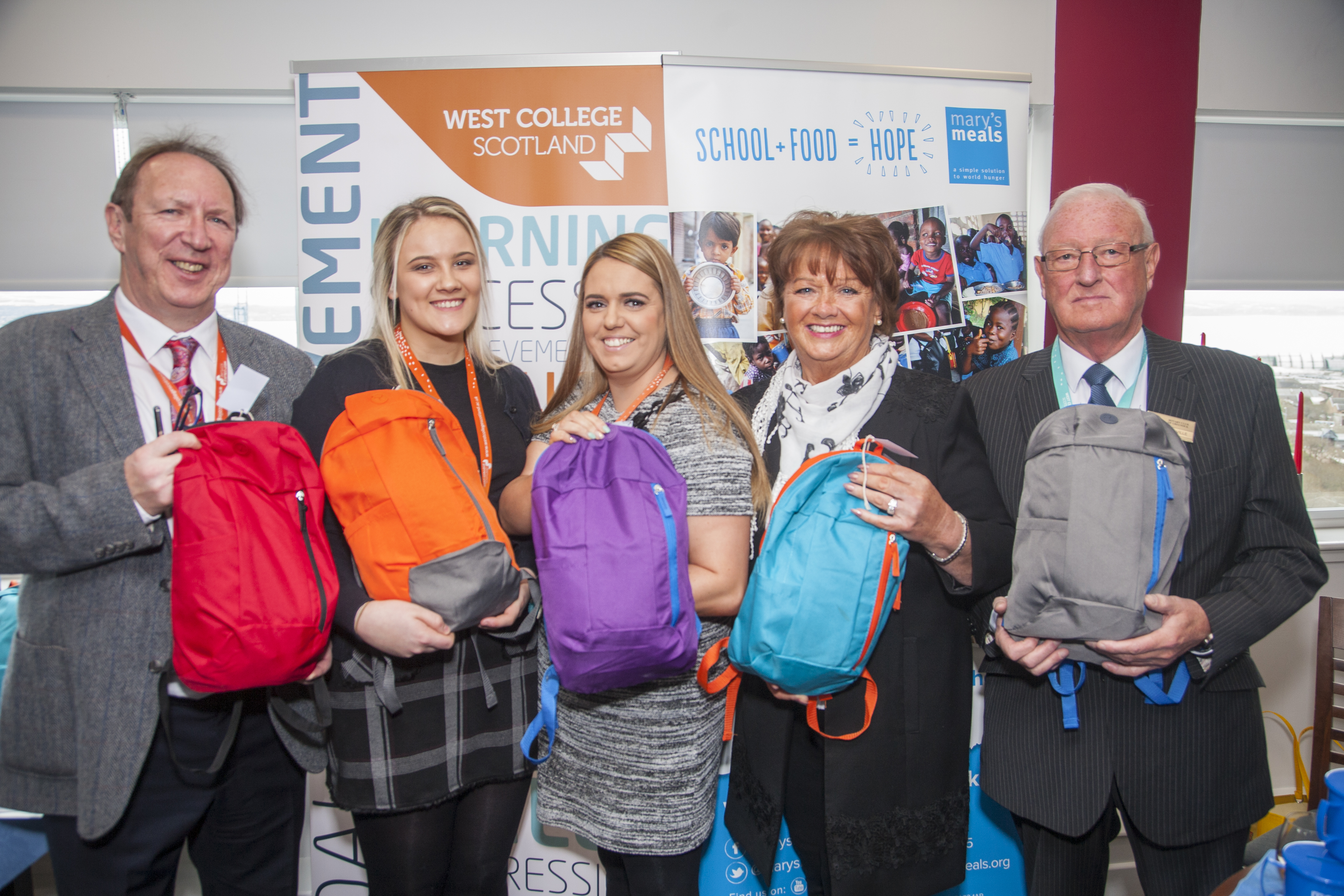 West College Scotland donate 212 backpacks to Mary’s Meals, thanks to the generosity of staff, stude…
