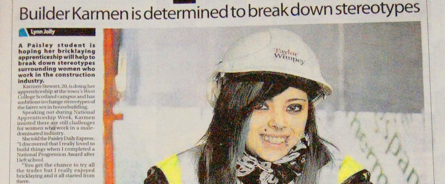 Full page feature for West College Scotland student Karmen Stewart in this Monday’s Paisley Daily Ex…