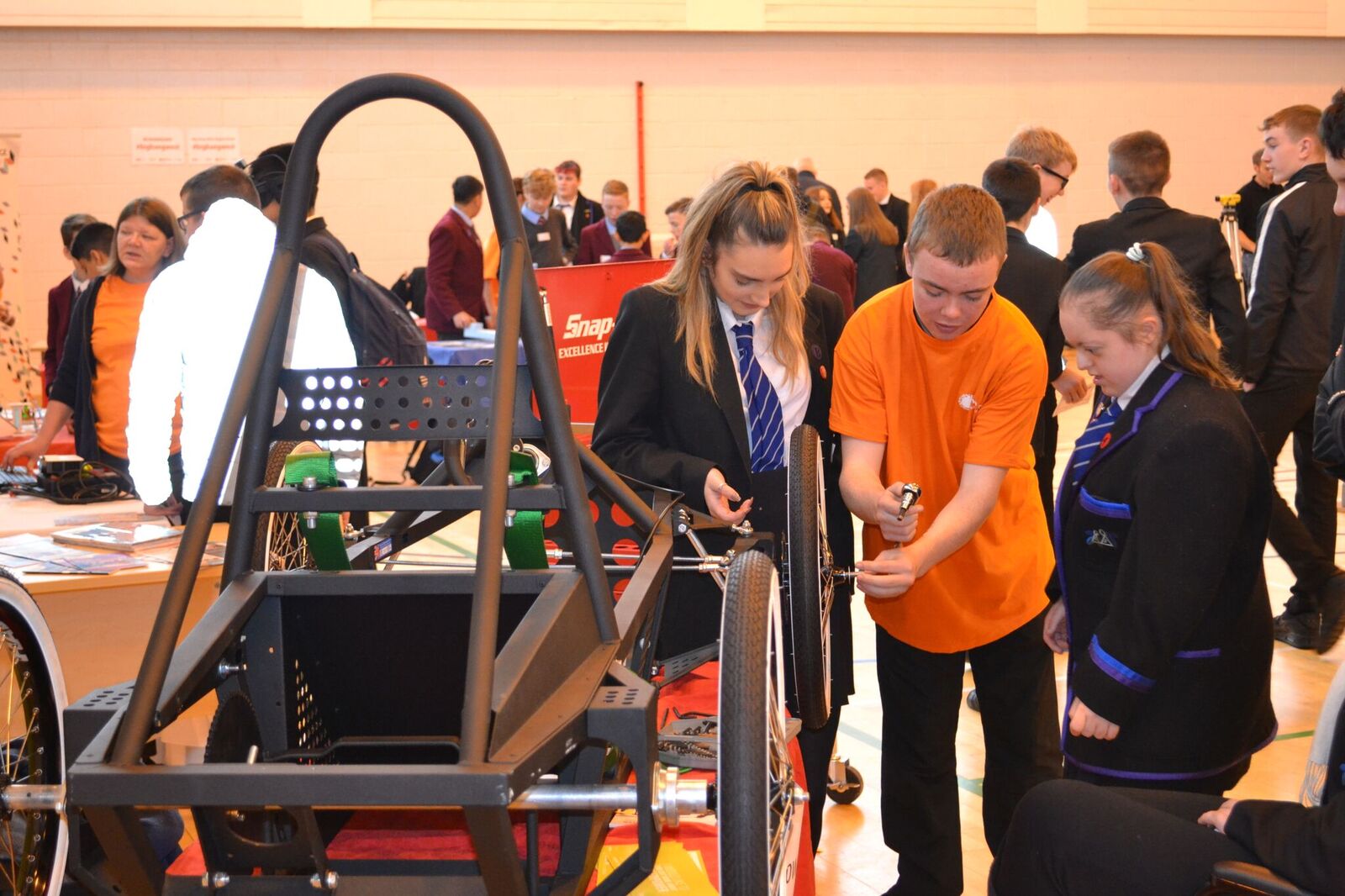 The pupils were encouraged to visit the numerous stalls showcasing STEM activities and to take part in fun and engaging competitions such as the Greenpower Pitstop Challenge. Kids were thrilled to endorse the role of pitstop technicians, trying to get the fastest time at putting a tyre on and off a Greenpower race kart.