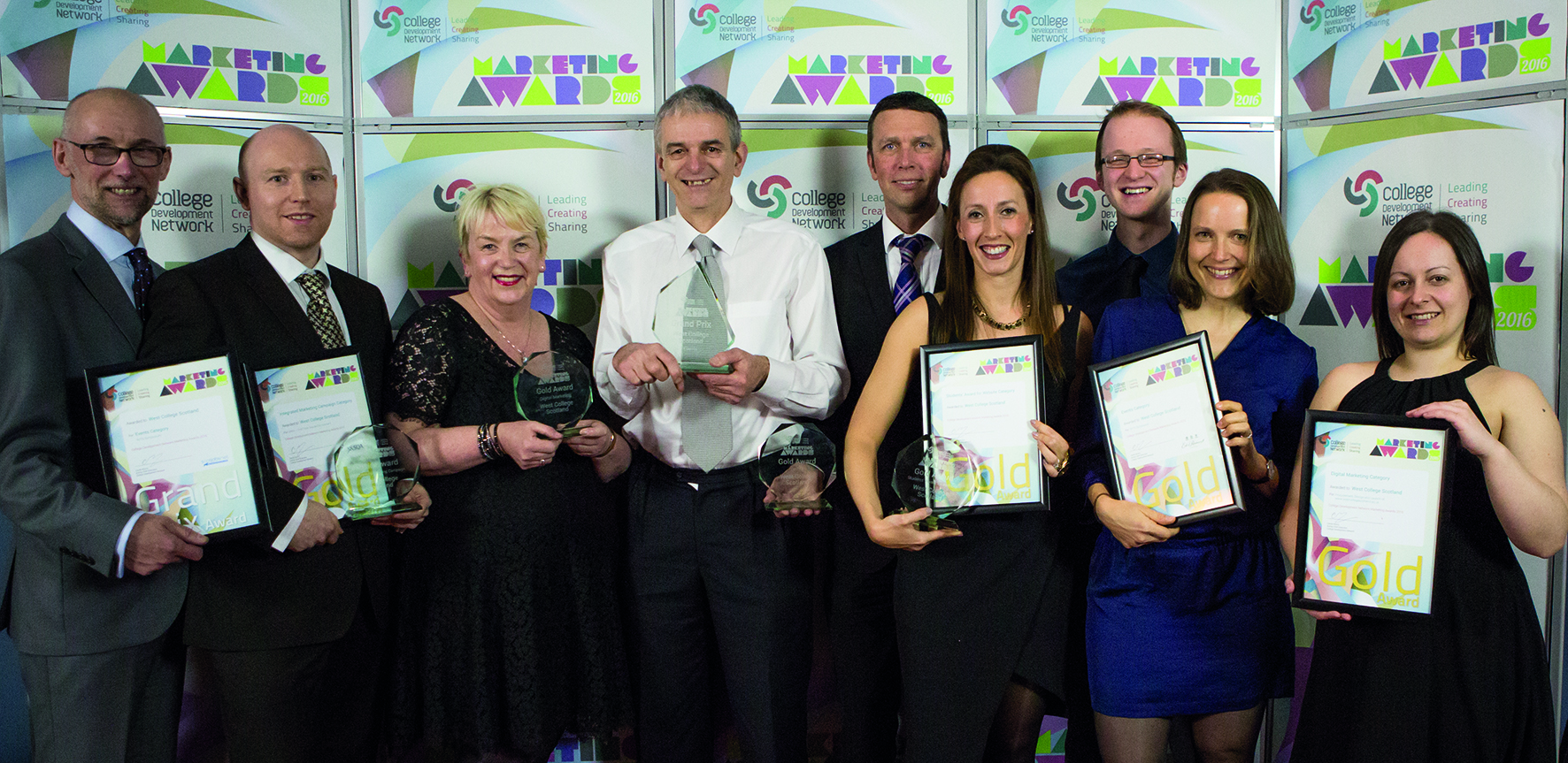 West College Scotland dominated the prizes, picking up the Students’ Award for Best Website, along with top spot placings for Digital Marketing, Integrated Marketing Campaign and Events. The College’s Marketing team also secured the Grand Prix award.