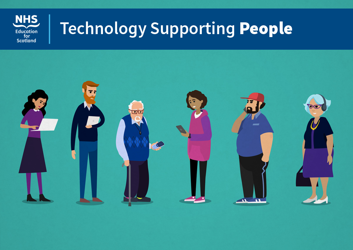Watch these helpful animations (https://learn.nes.nhs.scot/17607/technology-enabled-care/technology-supporting-people) for a quick guide to how technology can help you take control, stay connected and better manage your own health, care and wellbeing.