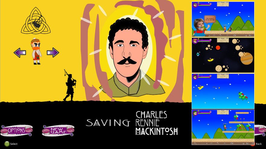 The pupils, coming from Lochfield Primary School, were to select the best game – and, after thorough assessment, awarded first prize to ‘Saving Charles Rennie Mackintosh’ . This very Scottish game features an impersonation of Nicola Sturgeon who calls ‘Fellow Scotsmen’ players to help save the renowned Scottish artist, architect and designer. (See above a screen capture of the game)