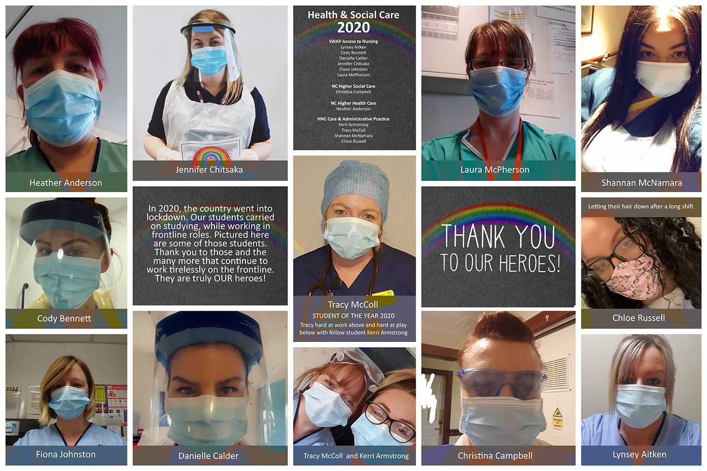 Proudly displayed in the Care teaching corridor of our Paisley campus, our ‘WCS Heroes’ collage, pays tribute to all those who worked and continue to work tirelessly through this pandemic.