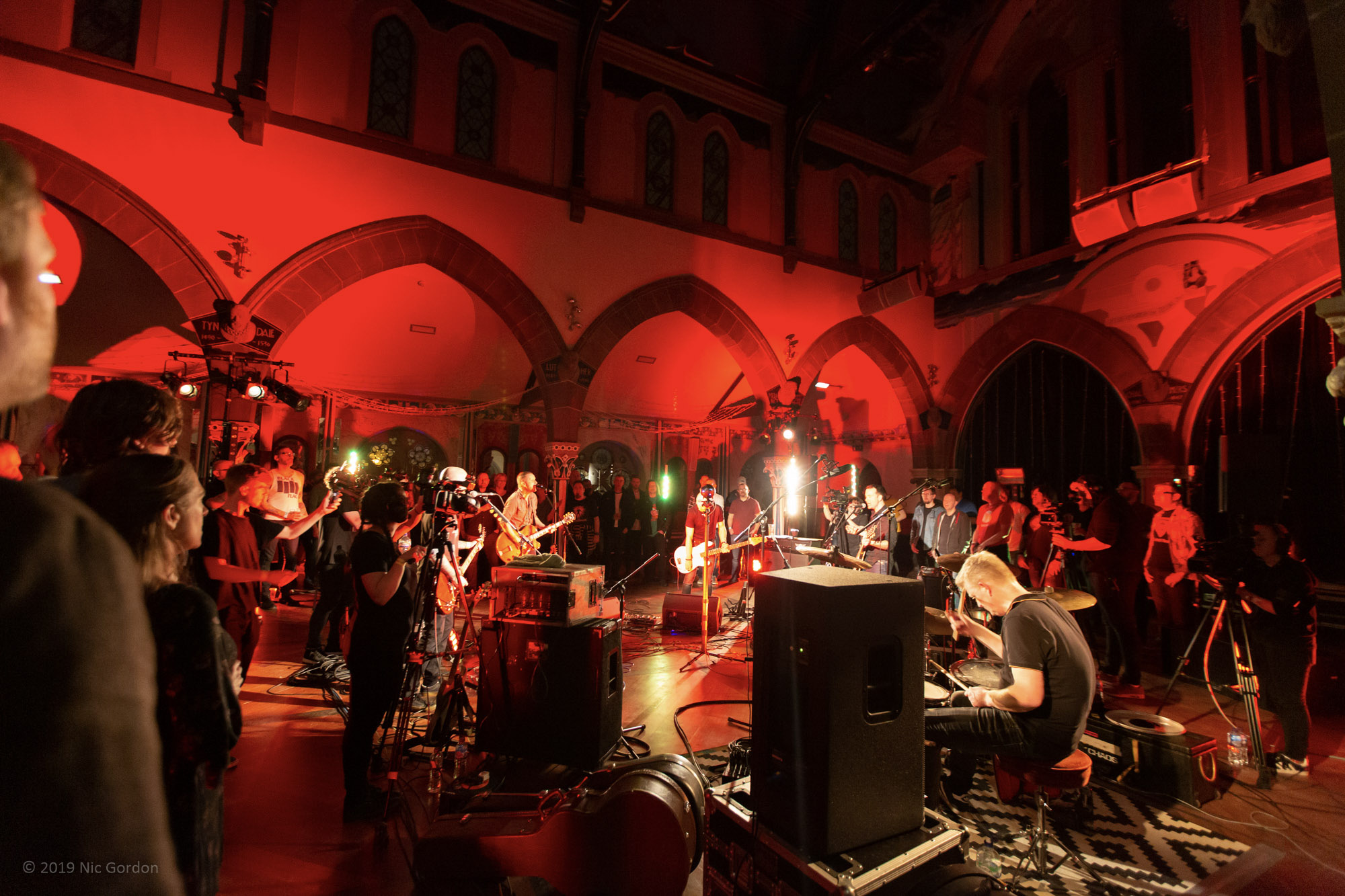 The band wanted to share this unique experience with their fans, so an audience of around 80 fans were invited along. These fans not only provided a wonderful atmosphere for the filming, but also became part of the set, as they were all around the band as they performed.