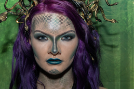 Kristina Blyth, 27 from Glasgow thoroughly enjoyed the event. She said “I was nervous leading up to the showcase as I was worried about my look coming together the way I had imagined and the response I received was excellent and put my mind at rest. I enjoyed learning varied skills and techniques of make-up, which will help me to pursue a career further in the industry in many styles, such as TV and film, theatre and special effects among others. Her inspiration was Medusa from Greek mythology. She wanted to use elements of fantasy also to create her own spin on the look. She opted for body painting on the model's arms and chest, creating snake scales to give her look an extra edge.