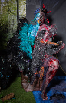 After particularly enjoying Special effects and hairdressing in her course, Sarahann Ferguson, 21 from Glasgow chose to take inspiration for her piece from horror and Chainsaw Massacre film. She said, “I love watching horrors/thrillers/violence movies, this is one of my favourites so being able to recreate it with my own twist is amazing! It’s been stressful but I enjoy working under pressure and having lots to do, it’s something to be proud!” In the future she would love to continue working in runway/fashion and tv/film whilst working with SFX.