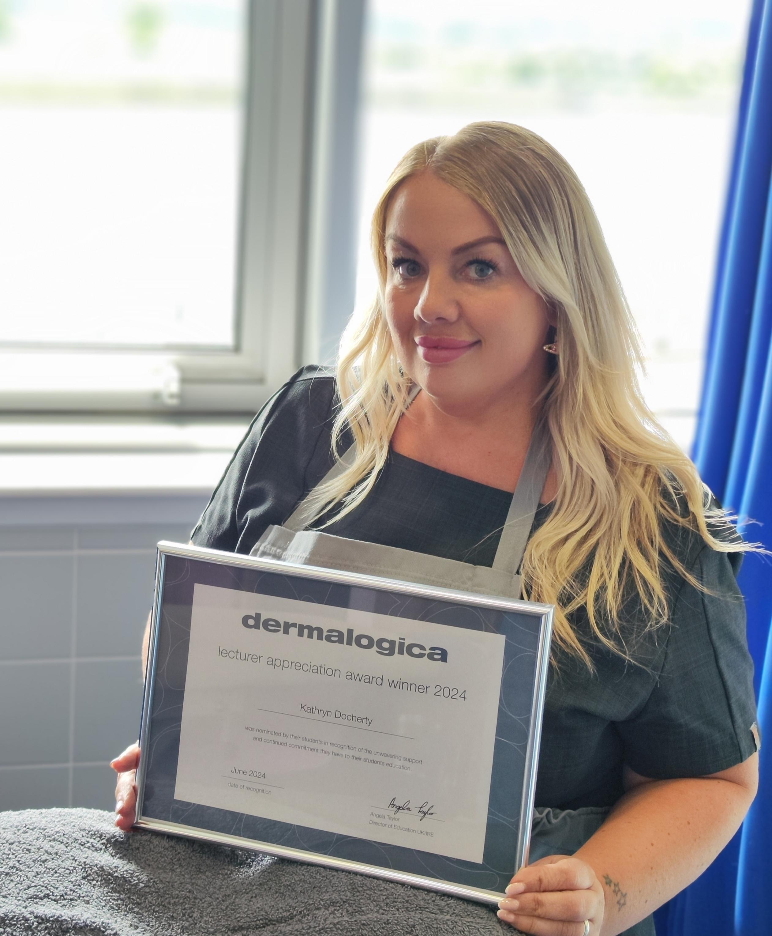 Kathryn has been honoured with the 2024 Dermalogica Lecturer Appreciation Award, a prestigious accolade from the renowned professional skincare brand. This award recognises Kathryn's hard work, dedication, and commitment to delivering outstanding education, reflecting her exceptional contribution to the field.