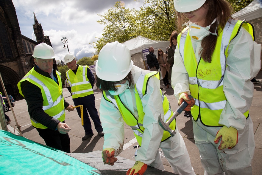 Our students took part in an event last Tuesday at the Glasgow Cathedral Square to promote Traditional Construction in the context of the Scottish Apprenticeship Week. During this event, they demonstrated Traditional Construction skills to an attendance of high school pupils from all over Glasgow. Kids were also able to have a try during hands-on taster sessions.