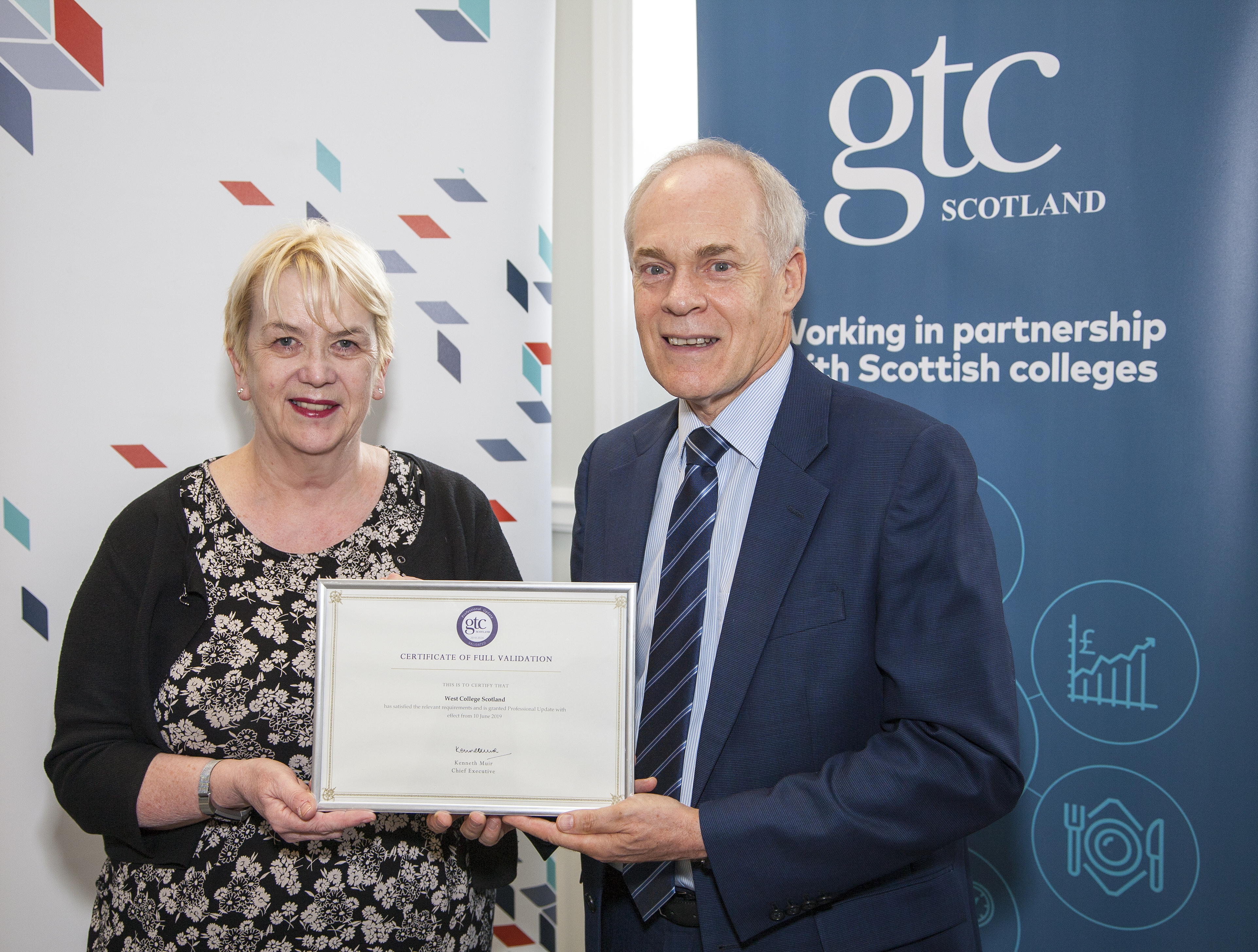 Vikki Robertson, Senior Education Officer, GTCS said, “The Panel is pleased to fully validate West College Scotland for their professional development policy and processes. The Senior Leadership Team’s commitment to ensuring staff are encouraged and supported to engage in high-quality professional learning is to be commended.”
