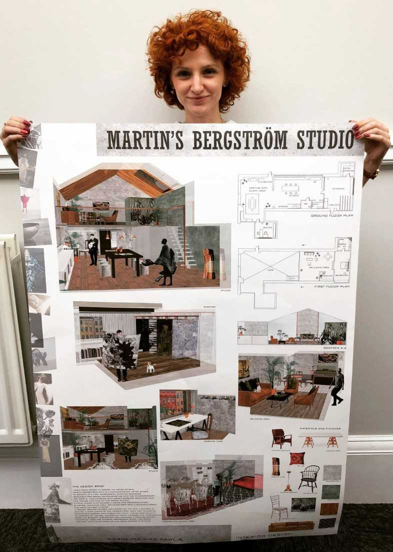 Thirty three year old HND Interior Design student Kike Pavlik from Paisley knew exactly who she wanted to design her studio for, she commented, ‘ I knew straight away that I would love to design a studio for one of my favourite contemporary artists - Martin Bergström.’