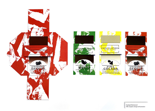 The brief which went beyond the simple request for artwork, challenged the students conceptual creative thinking abilities, asking them to come up with a family of chocolate bar flavours and a commercial packaging designs to suit.
