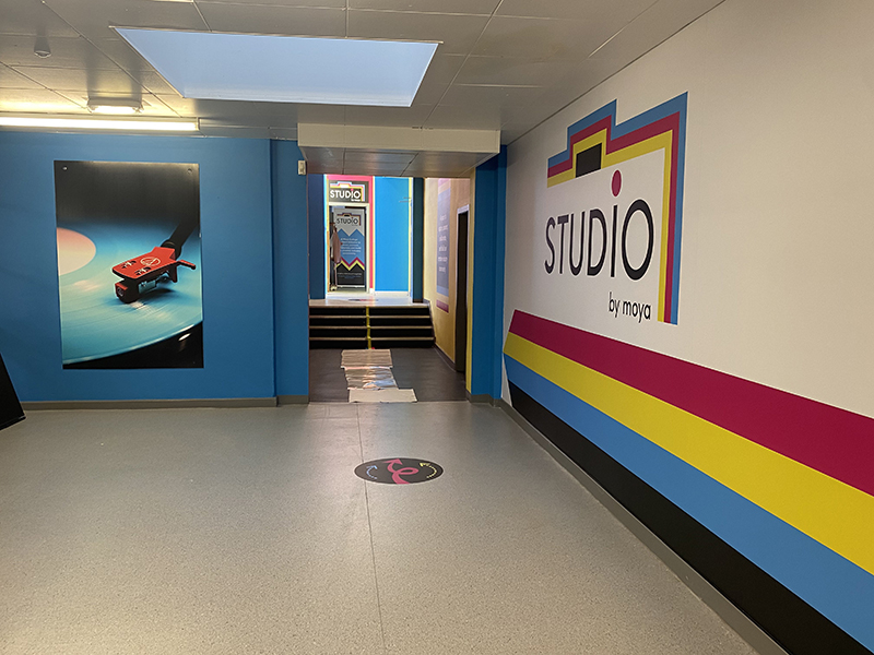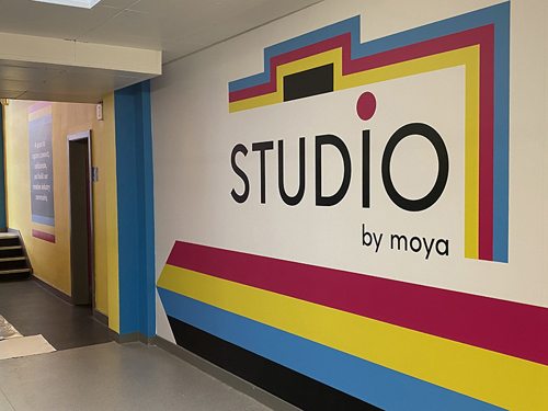 In order to create the space, the Graphic and Interior Design students were given briefs to design a logo for “lens-based capture and production.” The winning logo design, chosen by a panel consisting of team MOYA staff, HND Photography students, and freelance design artists, reflects the CYMK colours from the original MOYA logo to maintain consistency.