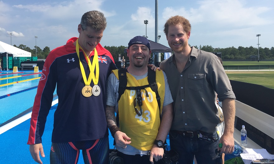 Picture above: Mac McLaren (right hand-side) with other members of the official photography team - Header picture: Team UK Captain David Wiseman, Mac MacLaren and Prince Harry