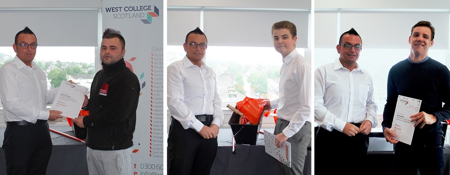 Header picture: Andrew Thompson (left), Craig Duncan (centre) and Thomas Moodie (right) are handed out their prize by Andrew Neeson, Construction Curriculum Enhancement Lecturer