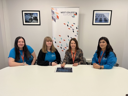 The agreement was signed yesterday by Principal Anne Campbell, alongside Freshta Qaderi, Student President for Greenock campus, Samantha Mason, Student President for Paisley campus, and Summer McCafferty, Student President for Clydebank campus.